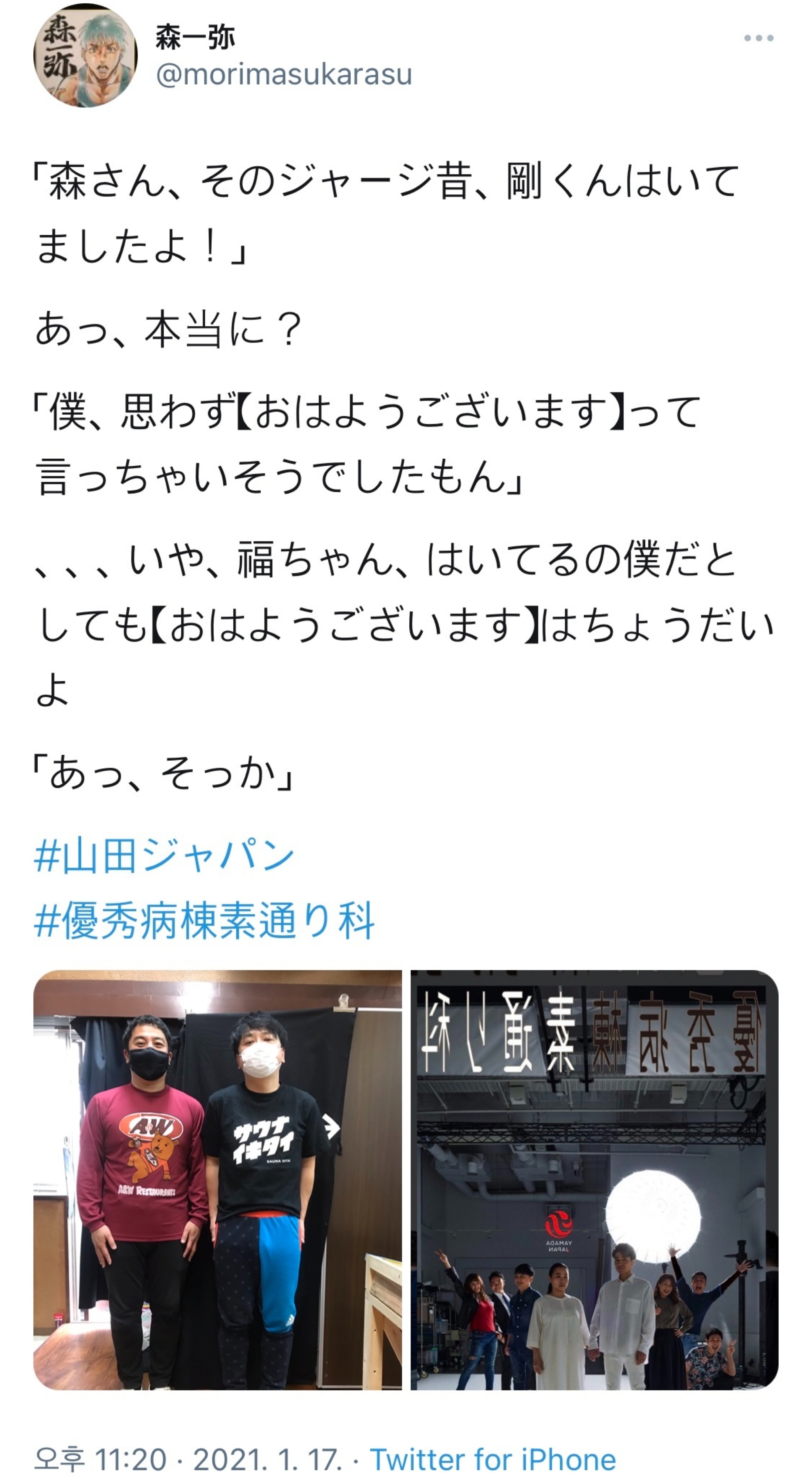 ■ 후쿠다: 모리상, 그 츄리닝 옛날에 쯔요시군이 입었었어요!