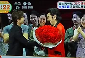 도모토 코이치군이 새빨간 장미 꽃다발 들고 등장