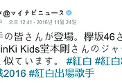 剛が立たなかった理由について、「スタンディングに遅れた理由には、少し理由がありまして」というと後ろにいた『欅坂46』のメンバーたちを見回し、「ついつい自分が、『欅坂46』さんの方だと勘違いをしてしまいまして。色味が……すみません。頭では分かっていたんですが、なんか体が、『欅坂46』さんと思い込んで座っておりました。大変申し訳ありませんでした」と、同じ色の洋服を着ていることを“謝罪”しながらアピール。これに光一は「勘違い……やってしまった(笑)」と、ツッコミを入れたり「剛くんがちゃんと『KinKi Kids』として来てくれるといいなと思っています」と、ジョークを飛ばした。