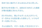 방금 전 했던 야마시타 타츠로상의 라디오에서 타츠로상이 부르시는 "가라스노 쇼넨"이 흘러 마리야상이 "그들도 40세에 가까워지는데 지금 어울리는 곡이네" 그러자 타츠로상이 "그건 그 때도 말했습니다. 20년 후에도 부를 수 있는 노래야 라고" 당시 타츠로상이 스트링스도 썼으며, 정말 열심히 했었다는 얘기가 ㅎㅎ