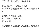 ◆初バラードベスト自信 6日に初のバラード・ベスト盤「Ballad Selection」が発売された。光一は「勝手な考えだけど、KinKiにはKinKiにしか歌えないバラードはたくさんあると思う」と自負。剛も「『愛のかたまり』という2人で作った曲がある。女性詞だけど(事務所の)後輩くんが気に入ってくれたり、カラオケで男性が歌う曲で上位に入っているという話を聞いた。そんなふうになるとは思ってなかったけど、エントリー(収録)されてるのがうれしい」と、こだわりを語った。