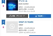 激しい順位争いを繰り広げたback number『アンコール』とSMAP『SMAP 25 YEARSW』は、当週それぞれ82,801枚、71,276枚を売り上げ、2位、3位に留まった。『アンコール』は、累計で364,868枚と35万枚超え、『SMAP 25 YEARSW』は、982,258枚で100万枚目前と、両タイトルとも、週間セールスの勢いをまだまだ維持している。またRADWIMPS『『人間開花』は、累計303,539枚セールスで30万枚超えを果たした。