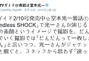 「ニュース シブ5時」(NHK総合・16:50~18:10)⇒17:11 予告映像、17:36〜17:55頃 堂本光一「SHOCK」舞台裏潜入