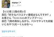 [KinKi Kids] 4/30 포유 무대「23階の笑い(23층의 웃음)」타츠미 쯔요시 모노마네 (0) | 2017.04.30 |