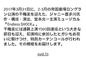 | [도모토 코이치] Endless SHOCK 2017 2~3월 제극 견학/관극 리스트 (0) | 2017.04.01 |