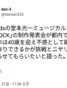 분류 전체보기12455 [도모토 코이치] 11/22 WS & 신문 ■ はやドキ! ■ Oha!4 ■ めざましテレビ ■ ZIP! ■ おはよう朝日です ■ モーニングCROSS https://www.asahi.com/sp/and_w/interest/entertainment/CORI2123813.html https://www.sanspo.com/geino/amp/20181122/joh18112205020001-a.html?__twitter_impression=true https://hochi.news/amp/entertainment/20181122-OHT1T50059.html?__twitter_impression=true https://www.oricon.co.jp/news/2123813/full/?utm_source=newsdigest&utm_medium=referral htt.. 2018. 11. 22. [도모토 코이치] Endless SHOCK 토호 홈페이지 https://www.tohostage.com/shock/index_k5522p1kgvzx.html 2018. 11. 22. [도모토 코이치] 11/26 돈나몬야 담당 11/26(月)は光一くんが登場!ミュージカル「ナイツテイル」で共演した井上芳雄さんの舞台を観に行った時の話。そして井上芳雄さんのラジオと自分の「どんなもんヤ」を聴き比べた感想(笑)。 11/26(월)은 코이치군이 등장! 뮤지컬 "나이츠 테일"에서 공동 출연한 이노우에 요시오씨의 무대를 보러 갔을 때의 감상. 그리고 이노우에 요시오씨의 라디오와 자신의 "돈나몬야"를 들으며 비교한 감상 ㅎㅎ 2018. 11. 21. [도모토 코이치] 11/21 SHOCK 기자회견 (와카즈쿠리) KinKi Kidsの堂本光一ミュージカル「End less SHOCK」の制作発表会が都内で行われた。来年は40歳を迎え不惑として臨む。いかに若作りできるかが挑戦とニヤリやれる限りやらせてもらいたいと語った。 KinKi Kids의 도모토 코이치 뮤지컬 "Endless SHOCK"의 제작 발표회가 도내에서 행해졌다. 내년은 40세를 맞이해 불혹으로 임한다. 얼마나 젊게 보일 수 있는가가 도전이라며 씽긋. 할 수 있는 한 하고 싶다고 말했다 와카즈쿠릵...ㅋㅋㅋ 이미 충분히 세월 역행하고 계십니다.... 나만 늙어.....꺼이꺼이 ㅠㅠㅠ http://oding.tistory.com/5709 이 이후로 2년 업뎃 안되었지만;;;; 안 봐도 똑같겠죠 뭐^^^^^^^^^^ 2018. 11. 21. 이전 1 ··· 45 46 47 48 49 50 51 ··· 3114 다음