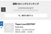 | [KinKi Kids] 2/26부 오리콘 주간 싱글 랭킹 : Topaz Love/DESTINY (37위) (0) | 2018.02.21 |