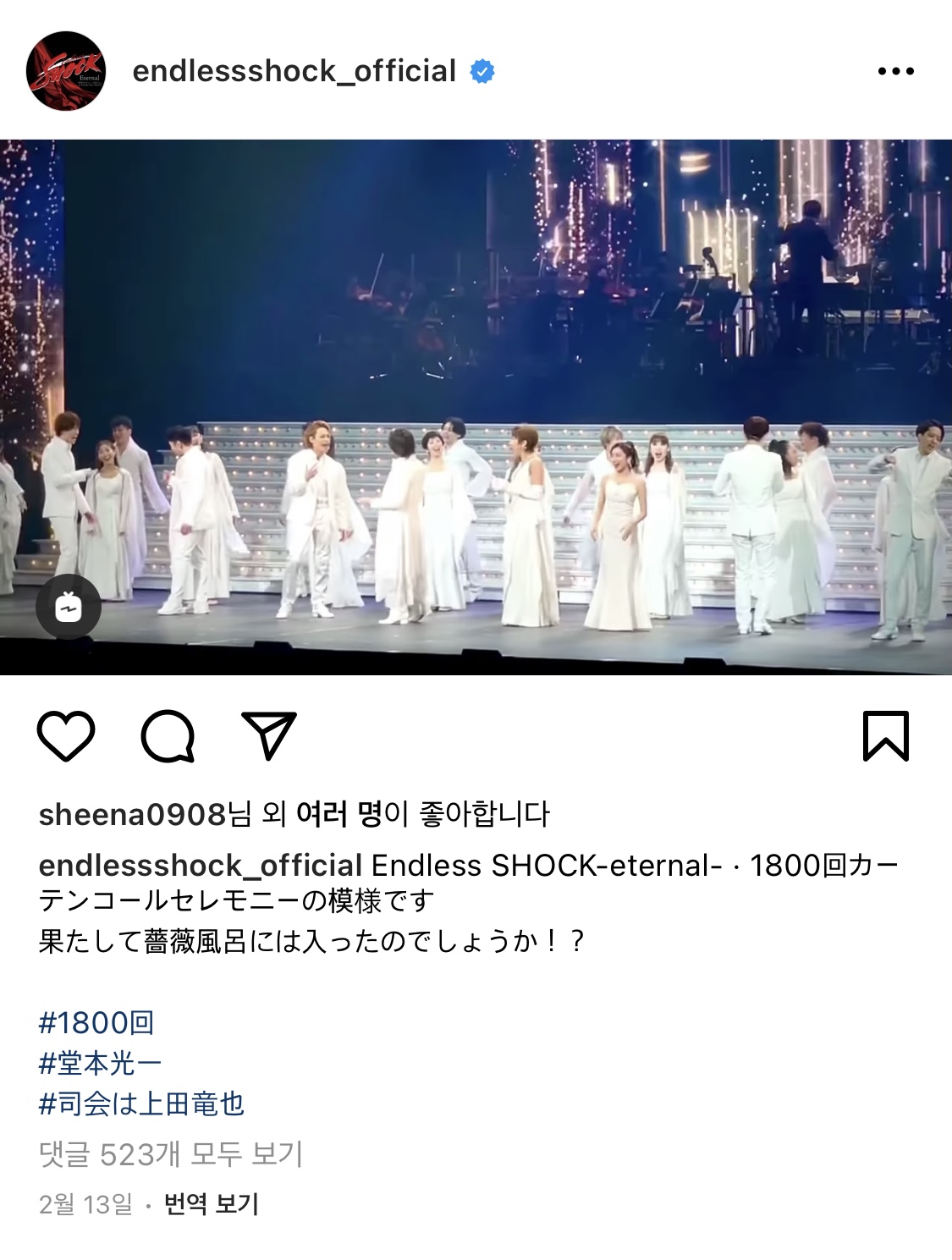1800회 커튼콜 세리머니를 하게 되었습니다