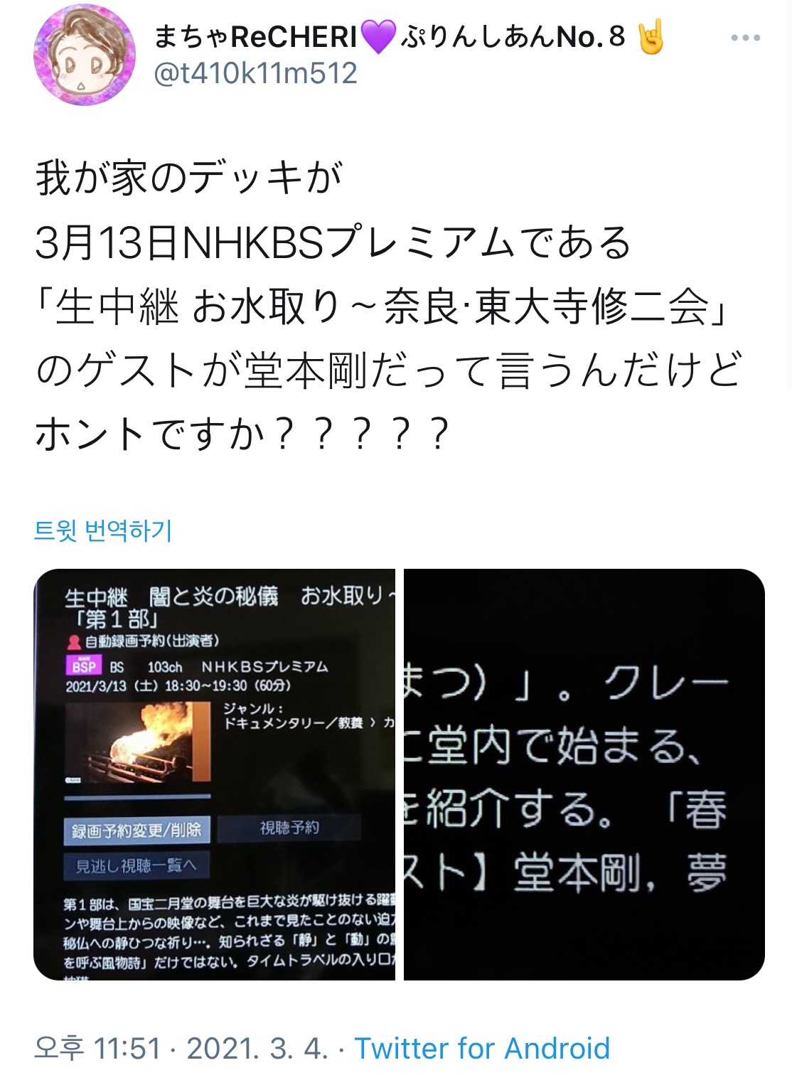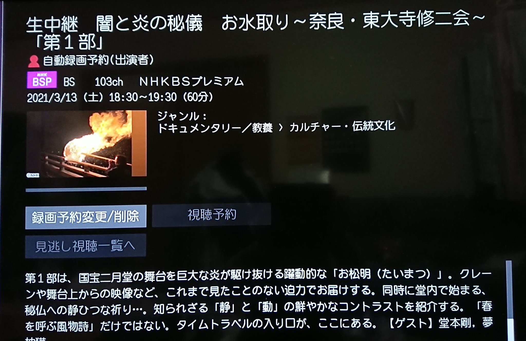 「生中継 お水取り~奈良・東大寺修二会」のゲストが堂本剛だって言うんだけど