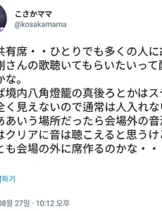 전체 글12455 [도모토 쯔요시] 9/3부 오리콘 싱글 주간 랭킹 1위 【オリコン】堂本剛ソロENDRECHERI、通算9作目のシングル首位 『銀魂2 -世にも奇妙な銀魂ちゃん-』の主題歌 2018-08-28 04:00 堂本剛のソロプロジェクト・ENDRECHERI(エンドリケリー)の約5年ぶりとなるニューシングル「one more purple funk...-硬命 katana-」(8月22日発売)が、発売初週で6.9万枚を売り上げ、9/3付オリコン週間シングルランキング(集計期間:8月20日~8月26日)で初登場首位を獲得した。これでソロシングルの首位は通算9作目となった。 本作は、自身も高杉晋助役で出演している現在公開中の実写映画『銀魂2 掟は破るためにこそある』の連動作として配信されているdTVオリジナルドラマ『銀魂2 -世にも奇妙な銀魂ちゃん-』の主題歌。同作の監督である福田雄一氏からのリクエストにより書き下ろした楽曲で、自身が演じる高杉役.. 2018. 8. 28. [도모토 쯔요시] one more purple funk 발매 라디오 코멘트 ④ ▲8/19(日)19:30-20:30 @FM807「Oshi☆Men Fun Club」 ▲8/20(月)10:00-13:55 KBS京都ラジオ「森谷威夫のお世話になります!」 ▲8/21(火)13:30-15:50 Datefm「J-SIDE STATION」 ▲8/22(水)16:00-17:46 FM OH!「Music Bit」 ▲8/23(木)09:45-09:55 FMヨコハマ「Lovely Day」 ▲8/23(木)14:00-19:00 FM滋賀「e-joy」 ▲8/23(木)25:00-26:00 MBSラジオ「ザ・ヒットスタジオ」 ▲8/24(金)22:00-25:00 ABCラジオ「下埜正太のショータイムレディ」 ▲8/27(月)11:30-15:51 FM OH!「LOVE FLAP」 180827 FM OH! LOVE FLAP 2018. 8. 27. 8/15 치비마루코 작가 사쿠라 모모코상 별세 【さくらももこさんご逝去の報】「ちびまる子ちゃん」の原作者であり、幅広い執筆活動の他、多方面でご活躍されました、さくらももこさんが2018年8月15日ご逝去されました。生前のご貢献に深く感謝申し上げるとともに、謹んでご冥福をお祈り申し上げます。 2018年8月27日 株式会社集英社 りぼん編集部 [사쿠라 모모코씨 서거 소식] "치비마루코"의 원작자이며 폭넓은 집필 활동 외, 다방면에서 활약한, 사쿠라 모모코씨가 2018년 8월 15일 서거하셨습니다. 생전에의 공헌에 깊이 감사 드리며, 삼가 명복을 빕니다. 2018년 8월 27일 주식 회사 슈에이샤 리본 편집부 KinKiのやる気まんまんソングについて、さくらももこさんとまる子が対談している記事。最後にKinKi Kidsの絵が丁寧に描かれていて、先生の愛を感じる。それにしてもKinKi Kids若いな。.. 2018. 8. 27. [도모토 쯔요시] 2012 ship 오토누레 空間共有席・・ひとりでも多くの人に故郷での剛さんの歌聴いてもらいたいって配慮なのかな。例えば境内八角燈籠の真後ろとかはステージが全く見えないので通常は人入れないよね。ああいう場所だったら会場外の音漏れよりはクリアに音は聴こえると思うけど。それとも会場の外に席作るのかな・・ 공간 공유석.. 한 명이라도 더 많은 사람들이 고향에서의 쯔요시상의 노래를 들어 주었으몀 한다는 배려일까. 예를 들면 경내 팔각 등롱의 바로 뒤는 무대가 전혀 보이지 않으므로 보통 사람 들여보내지 않지. 그런 장소라면 회장 밖 새는 소리보다는 선명하게 소리는 들리겠지만. 아니면 회장 밖에 자리 만들려나... ちなみに2012年のship最終日は会場内600人に対して音漏れ組は650人くらいでした。そのうち400人が抽選でエントランスに入れました。(エントランスチケット代4000円).. 2018. 8. 27. 이전 1 ··· 146 147 148 149 150 151 152 ··· 3114 다음