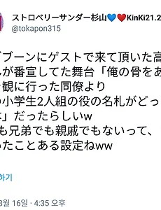 전체 글12455 [도모토 쯔요시] 8/17 스즈키 와타루상 트윗 KENKENとツインベースを繰り広げたのは3、4年前?剛くんの後ろで国際フォーラム2days和気あいあいと演奏したのは記憶に新しい。日本が誇るベースヒーローと、引き合わせてくれた仲間達にリスペクトと感謝を込めて。 9/29(土)NHK SONGS 23:00〜チェックしてみてください! #KENKEN #鈴木渉 https://t.co/CjQ04RBIBW KENKEN과 트윈 베이스를 펼친 것은 3, 4년 전? 쯔요시군의 뒤에서 국제 포럼 2days 화기애애 연주한 것은 기억에 새롭다. 일본이 자랑하는 베이스 영웅과 만나게 해 준 동료들에게는 경의와 감사를 담아서.. 9/29(토)NHK SONGS 23:00, 체크하고 보세요! #KENKEN#스즈키 와타루 https://t.co/CjQ04RBIBW 2018. 8. 17. [도모토 쯔요시] 8/16 후쿠다 유이치 감독 트윗 【#銀魂1メモ📝】高杉をとにかくかっこよく決めなければと「堂本さんがインする前の晩は眠れない程緊張した」と語る監督。いろんな意味で「大丈夫だ、この映画」と確信できた日になったそうです👏 #銀魂2✌ #銀魂地上波 [#은혼 1메모 📝] "타카스기를 어쨌든 멋지게 해야지 라고 도모토씨가 크랭크 인에 들어가기 전날 밤은 자지 못할 정도로 긴장했다"고 말하는 감독. 여러가지 의미로 "괜찮을거다, 이 영화"라고 확신한 날이 되었대요 👏 #은혼 2✌ #은혼 지상파 やっぱ、つよし、かっこええわぁ🤩 https://t.co/7hwPPtWnjr 역시 쯔요시 멋있어 今回のつよしもカッコいいすよ!三味線キュルキュルいわせてます🤩練習してるとこの写真、超かっこいいけど、出せないの、辛いっっ‼️‼️ 이번 쯔요시도 멋있어! 샤미센 큐루큐루 연주하고 있습니다 🤩 연습하.. 2018. 8. 16. [KinKi Kids] 타카시마 마사히로상 무대「俺の骨をあげる」 ブンブブーンにゲストで来て頂いた高島政宏さんが番宣してた舞台「俺の骨をあげる」を観に行った同僚より 関西の小学生2人組の役の名札がどっちも「堂本」だったらしいw 2人とも兄弟でも親戚でもないって、どっかで聞いたことある設定ねww 붕부붕에 게스트로 오신 다카시마 마사히로씨가 방송에서 광고했던 무대 "내 뼈를 줄게" 를 보러 간 동료로부커 캄사이의 초등 학생 두 명 역의 이름표가 둘 다 "도모토"이었다나봐 w 둘 다 형제사이도 친척도 아니라고, 어딘가에서 들은 적 있는 설정. ww ちなみに堂本さん役の中の人は愛かたをカラオケ十八番にしているらしく、ファンイベントでよく披露するので中の人ファンの同僚はKinKiバージョン未聴なのに愛かた歌えます https://t.co/F0vKGore33 참고로 도모토씨 역을 맡은 사람은 아이노카타마리를 노래방 십팔.. 2018. 8. 16. 8/16 조지 클린턴 일본 입국 (8/19 SUMMER SONIC) 2018. 8. 16. 이전 1 ··· 170 171 172 173 174 175 176 ··· 3114 다음