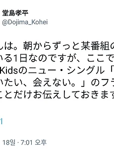 전체 글12455 [도모토 쯔요시] 181219 LOVE FIGHTER # 686 오늘의들은 적 없어 속담 몸을 젖히고, 젖히고, 젖힌다 2018. 12. 20. [KinKi Kids] 12/18 & 12/19 도지마 코헤이상 트윗 こんばんは。朝からずっと某番組のロケをしている1日なのですが、ここで、今日はKinKi Kidsのニュー・シングル「会いたい、会いたい、会えない。」のフラゲ日だということだけお伝えしておきますね。곰방와. 아침부터 계속 모방송의 로케를 하고 있는 하루입니다만, 여기서, 오늘은 KinKi Kids의 뉴 싱글 "만나고 싶어, 만나고 싶어, 만날 수 없어"의 프라겟날이라는 것만큼은 전해둘게요. まさに! 堂島さんに会いたい、会いたい、会えない!딱 바로!도지마상과 만나고 싶어, 만나고 싶어, 만날 수 없어! 藤井さん!ありがとうございます。 会いましょう、会いましょう、会えるでしょう!후지이상! 감사합니다.만나요, 만나요, 만날 수 있겠죠! KinKi Kidsのニュー・シングル「会いたい、会いたい、会えない。」、本日リリースです。今作も2人の共同プロデュー.. 2018. 12. 20. [도모토 쯔요시] 181218 LOVE FIGHTER # 685 오늘의들은 적 없어 속담 입장 진행하며 퇴장 2018. 12. 19. [KinKi Kids] 12/18 모리 카즈야상 트윗 & 블로그 さぁ 今日は フライングゲット だぜ。자아,오늘은플라잉 겟토다제 今から 劇場に 向かいます。 pic.twitter.com/3Ebq6pIJBJ— 森一弥 (@morimasukarasu) 2018년 12월 18일 今から 劇場に 向かいます。지금부터극장을향합니다. https://ameblo.jp/enerugi/entry-12426730590.html?timestamp=1545109644 2018-12-18 14:07:14 フライングゲットだぜ!! 플라잉 겟토다제!! さぁ자아, 喜劇・新オセロ いよいよあと2回。 昨日は休演日 1日空くとまたドキドキします。희극 신 오세로드디어 앞으로 2회어제는 휴연일하루 비면 또 두근두근합니다. 昨日 発売しました 『僕たちレスリング芸人大集合!』 初日から沢山のご予約ありがとうございます。 嬉しビックリで.. 2018. 12. 19. 이전 1 ··· 21 22 23 24 25 26 27 ··· 3114 다음