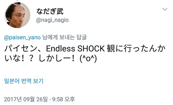 なだぎ武 @nagi_nagio 오전 9:14 - 2017년 5월 20일