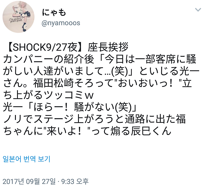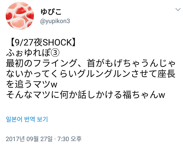 일단 첫 플라잉 때 의자에서 조금 뛰어서 입 열고 방긋방긋 하면서 플라잉을 바라보고 있던 마츠자키상이 엄청 귀여웠다는 것을 알려드립니다. 눈호강.