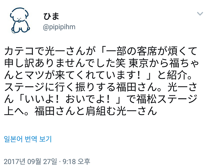 ■ 코이치: 일부의 객석이 번잡해서 죄송했습니다ㅎㅎ 도쿄에서 후쿠짱과 마츠가 와주었습니다!
