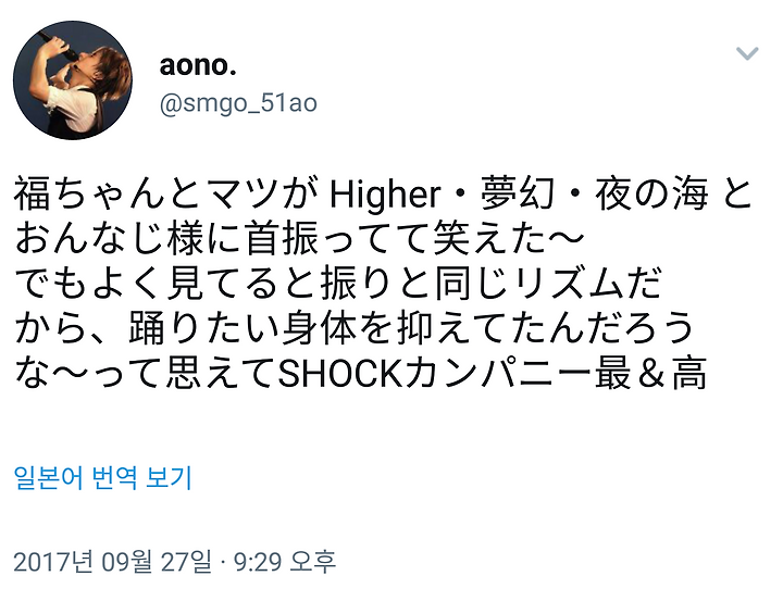 후쿠짱과 마츠가 Higher 무겐 요루노우미 때 똑같이 목을 흔들어서 웃었다~