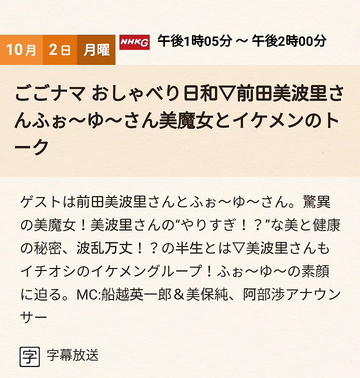 게스트는 마에다 비바리상과 포유상. 경이의 미마녀! 비바리상의 "너무 한거!?"인 아름다움과 건강의 비밀, 파란만장!? 인 반생이란