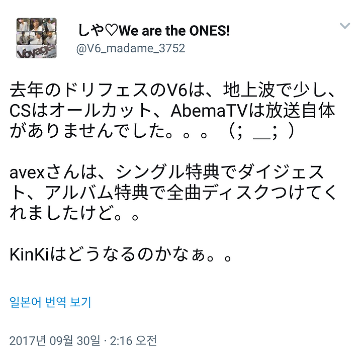 去年のドリフェスのV6は、地上波で少し、CSはオールカット、AbemaTVは放送自体がありませんでした。。。(;_;)