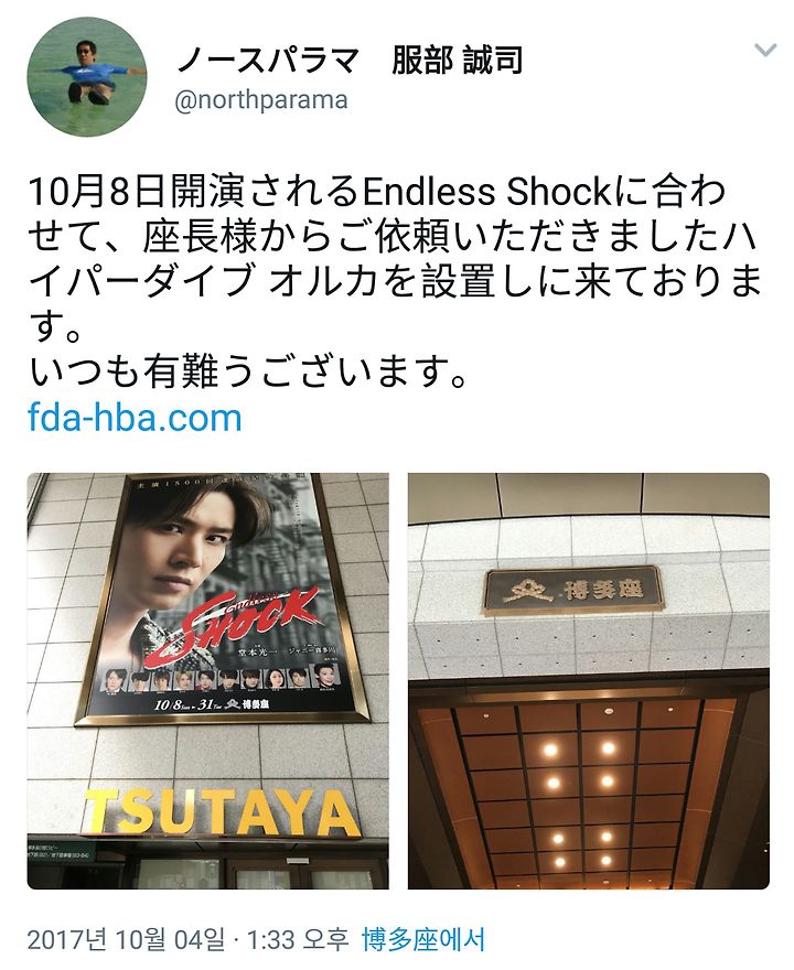 10월 8일 시작되는 Endless Shock에 맞춰 좌장님께서 의뢰하신 하이퍼 다이브 오르카를 설치하러 와있습니다.