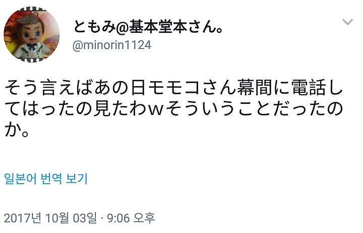 그러고보니 저 날 모모코상 막간에 전화하셨던거 봤어ㅎㅎ 그런 거였던가.