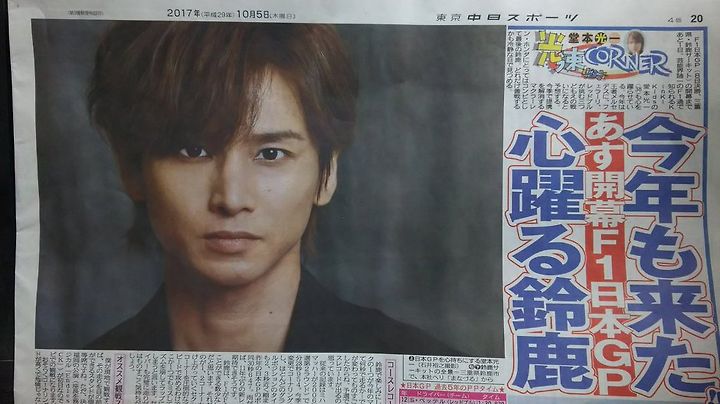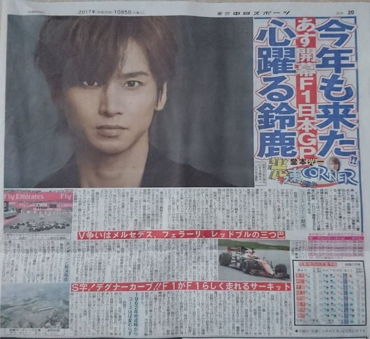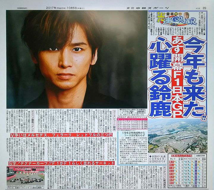 おはようございます。今朝の東京中日スポーツ。今年もきましたね~裏一面、F1好き光一さん。