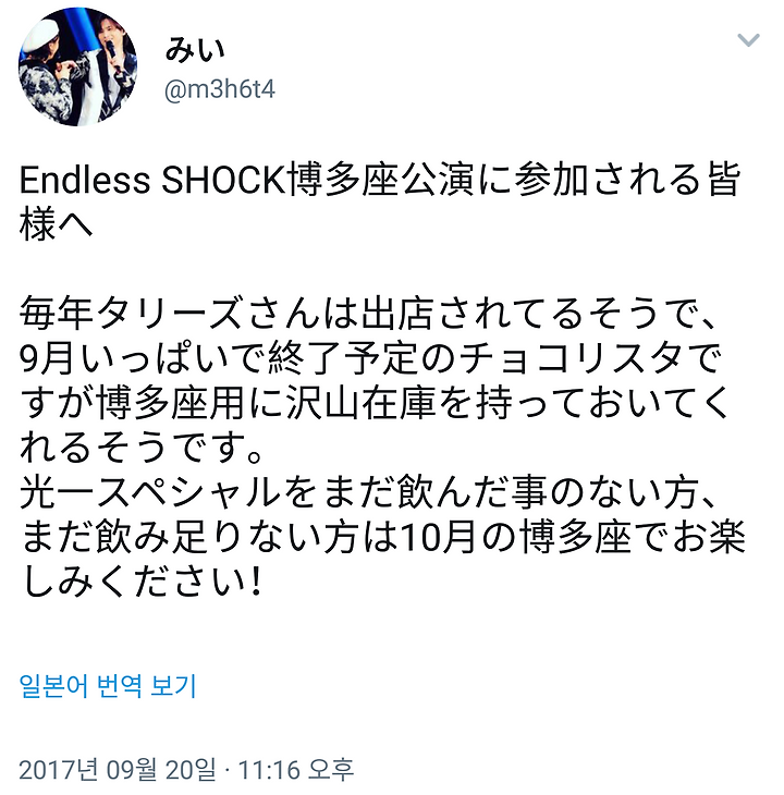 하카타자 레미제라블 기간 중에 입점되어있는 툴리스상, 쵸코리스타는 없............