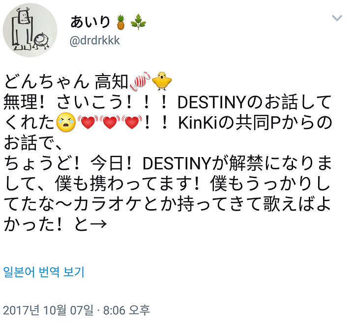 無理!さいこう!!!DESTINYのお話してくれた!!KinKiの共同Pからのお話で、