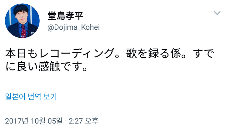 [KinKi Kids] 10/2 & 10/5 도지마 코헤이상 트윗 (쯔요시 DESTINY 녹음?)