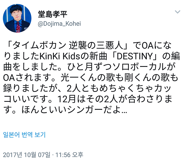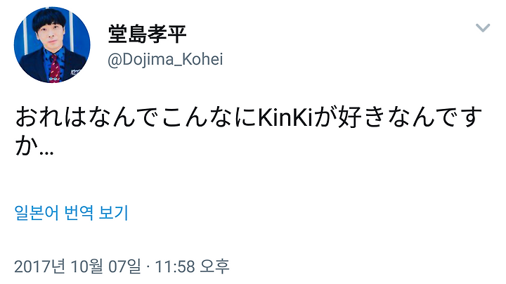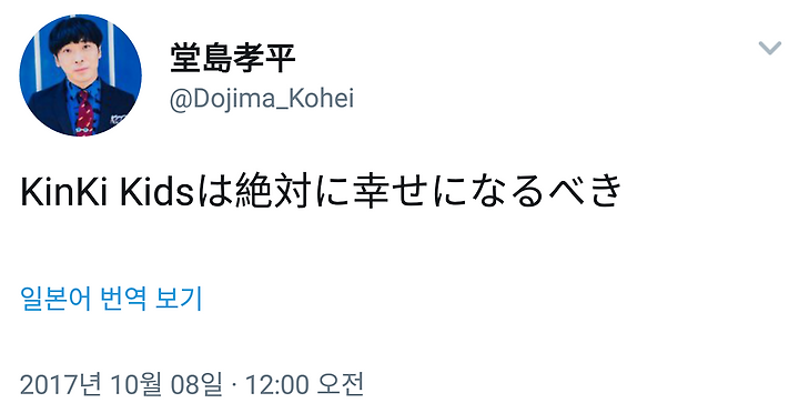 [KinKi Kids] 10/7 도지마 코헤이상 트윗