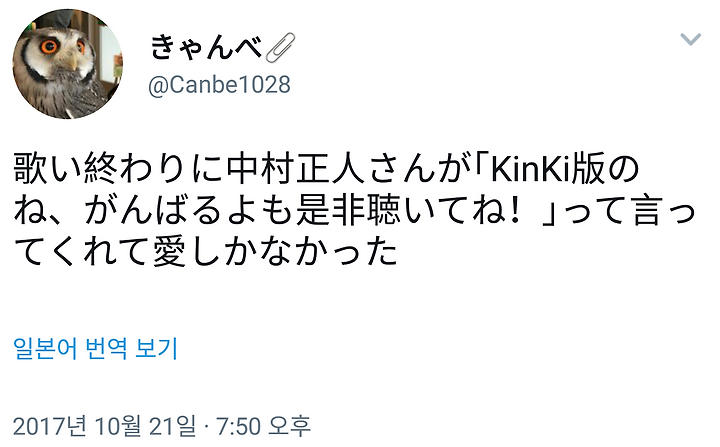 노래 끝에 나카무라 마사토상이 "KinKi판의 네, 감바루요도 부디 들어줘!"라고 말해주어서 사랑밖에 없었다