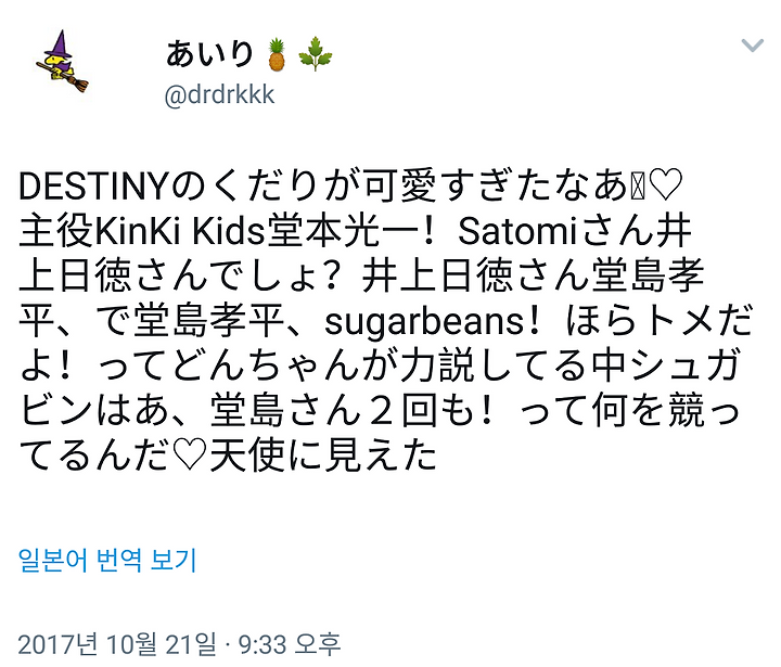 "주역 KinKi Kids 도모토 코이치! Satomi상 이노우에 닛토쿠상이잖아? 이노우에 닛토쿠상, 도지마 코헤이, 그리고 도지마 코헤이, sugarbeans! 봐봐, 토메라구!" 라며 돈짱이 역설하고 있는 가운데 슈가빈은 "아, 도지마상 2번이나 나오셨네요!" 라며 뭘 경쟁하고 있는거냐며♡ 천사로 보였다