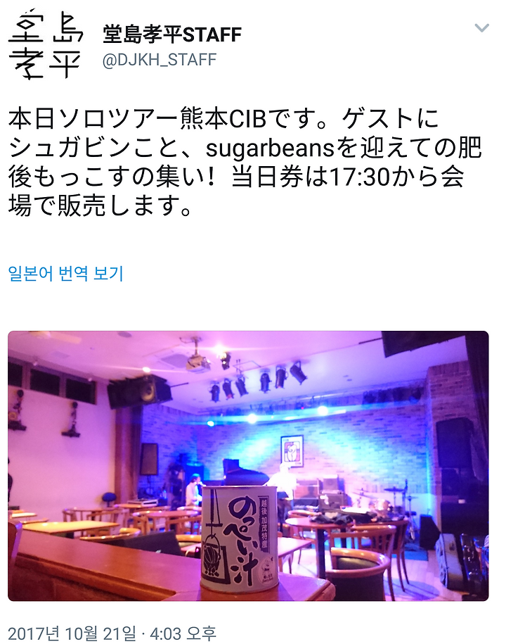 오늘 솔로 투어 쿠마모토 CIB입니다. 게스트로 슈가빈인, sugarbeans를 맞이한 고집쟁이(쿠마모토 남자의 성격을 표현한 말) 모임! 당일권은 17:30에서 회장에서 판매합니다.