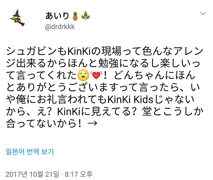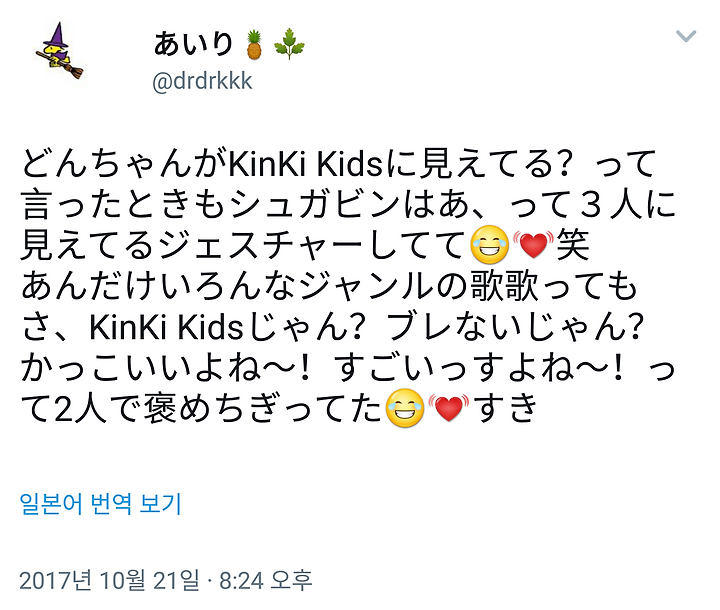 シュガビンもKinKiの現場って色んなアレンジ出来るからほんと勉強になるし楽しいって言ってくれた!どんちゃんにほんとありがとうございますって言ったら、いや俺にお礼言われてもKinKi Kidsじゃないから、え?KinKiに見えてる?堂とこうしか合ってないから!→