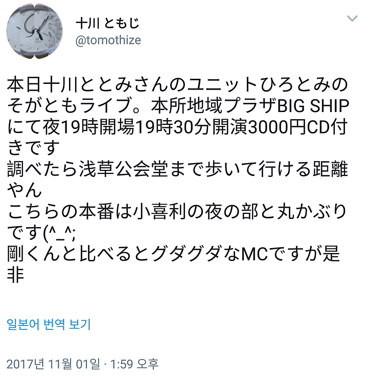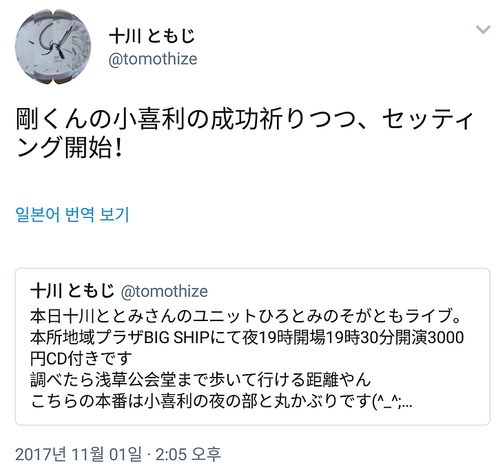 [도모토 쯔요시] 11/1 소가와 토모지상 트윗