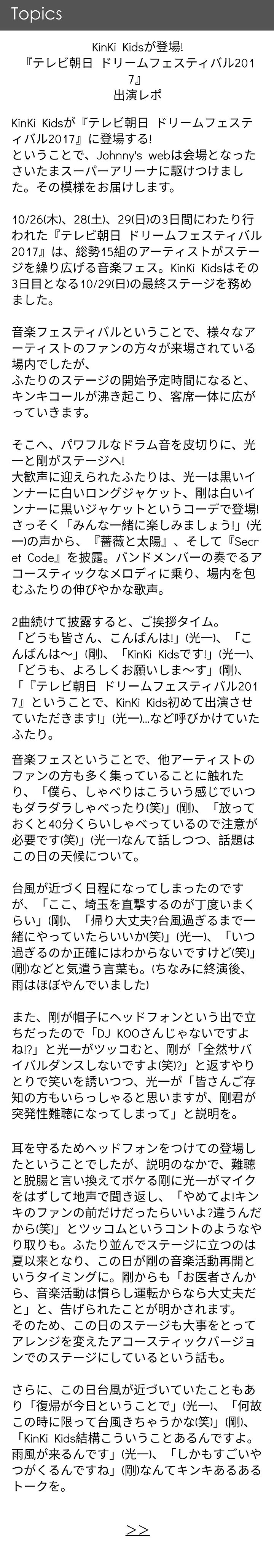 [KinKi Kids] J-web 10/29 테레아사 드림페스 레포 업뎃
