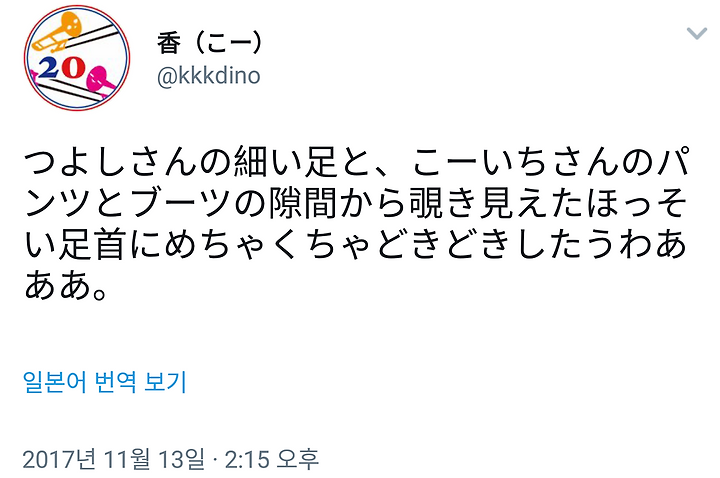 쯔요시상의 얇은 다리와 코이치상의 바지와 부츠 사이로 엿본 얇은 발목 엄청 두근했다