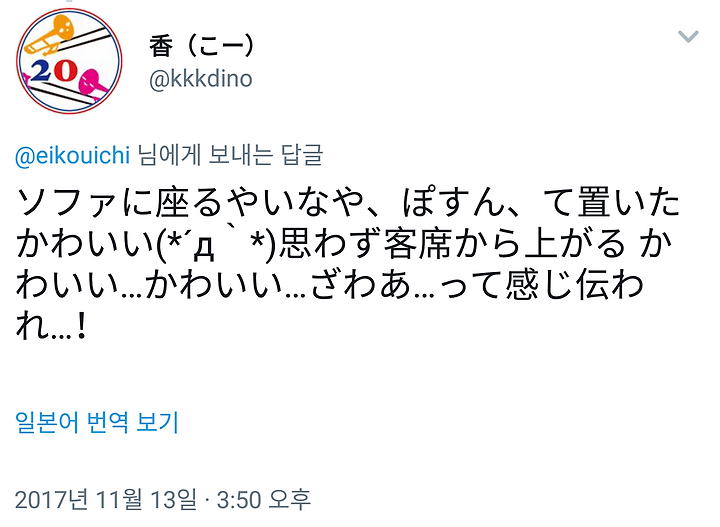소파에 앉자마자 퉁! 히고 올려놨어 귀여워 무심코 객석에서 귀여워... 귀여워...웅성웅성...이였던 느낌이 전해지길