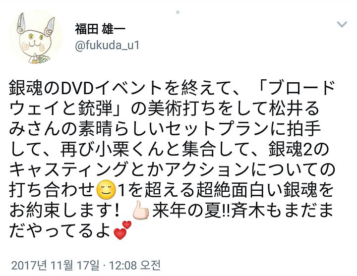 11/17 후쿠다 유이치 감독 트윗