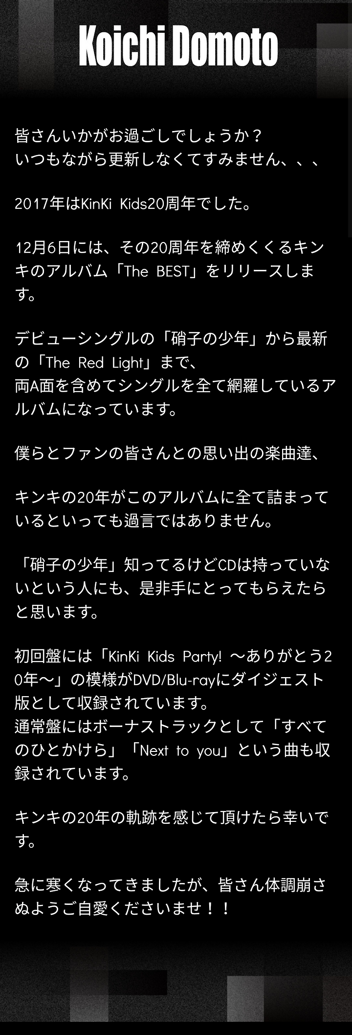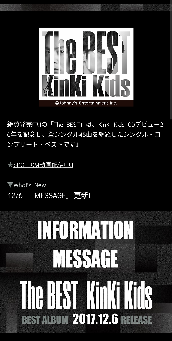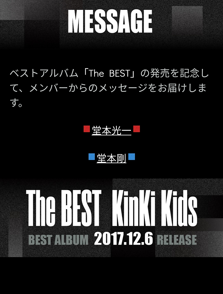 [KinKi Kids] 12/6 The BEST 특설 사이트 MESSAGE