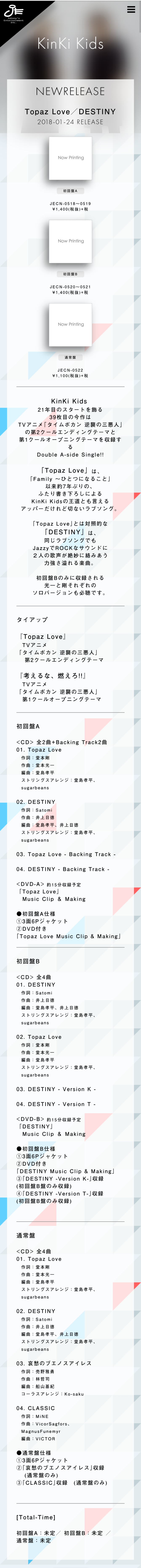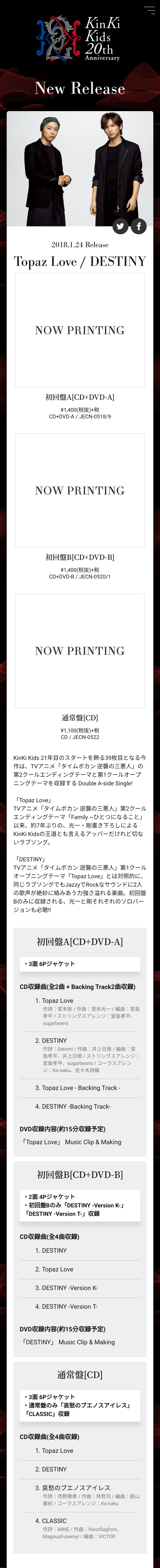 [KinKi Kids] 1/24 39th Single「Topaz Love / DESTINY」발매