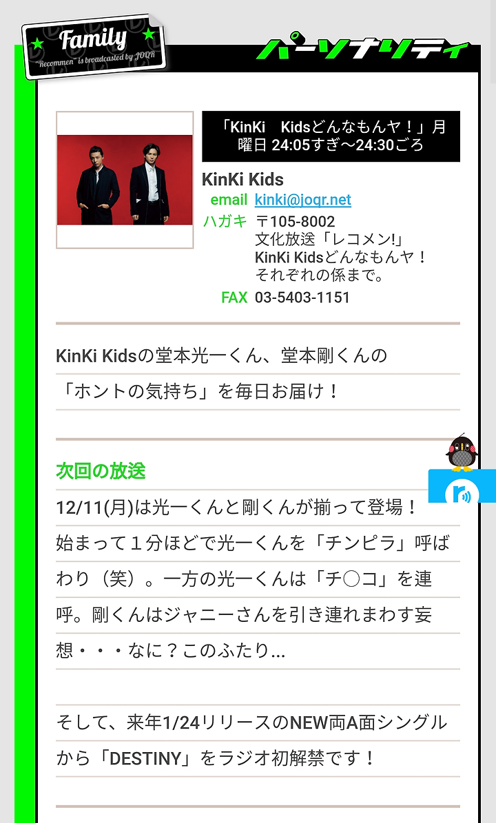 そして、来年1/24リリースのNEW両A面シングルから「DESTINY」をラジオ初解禁です!