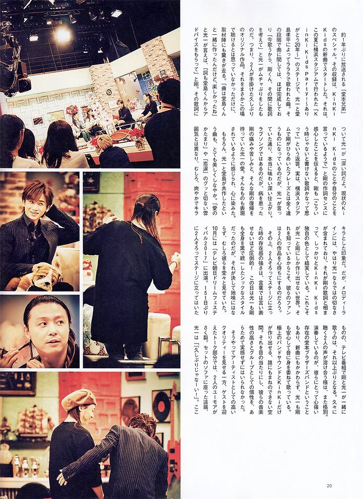 두 번째 게스트 사카가미 시노부도 "KinKi Kids의 붕부붕"에서 의기투합했던 사이. 그만큼 "너희들 좀 더 붙임성 좋게 하는 편이 좋아"라며 두 사람에게 지을 하여 "내가 부를테니 (세트)입장부터 다시 해" 라고 리퀘스드. 재입장한 코이치가 텐션 높게 관객에게 하이터치하자 그것을 보고 있던 쯔요시가 쓴웃음을 짓는다고 하는 일막이 펼쳐졌던 것이다. 이렇게 임기응변에 대응해버리는 것도 또 KinKi의 매력. 일류 아티스트이면서 싹싹함도 겸비하고 있다. 그 폭넓음이 많은 사람들로부터 사랑받는 요인이라는 것은 틀림없다.