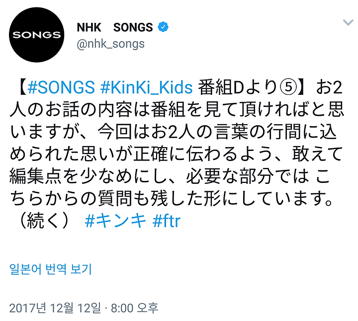 [KinKi Kids] 12/12 NHK SONGS 트윗 (제작 비화 ⑤)