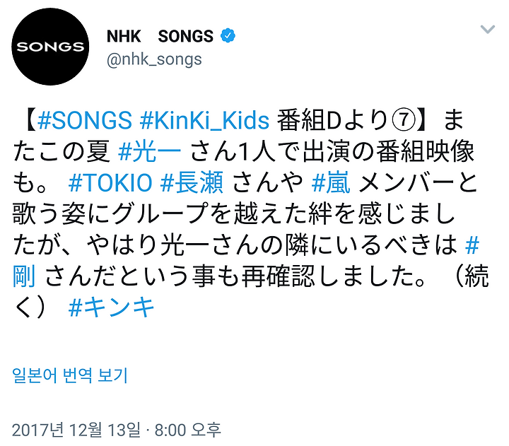 [KinKi Kids] 12/13 NHK SONGS 트윗 (제작 비화 ⑦)
