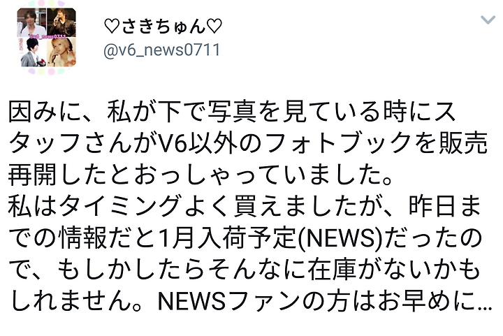 ジャニショのフォトBookはV6のみ売り切れで他は販売再開!!