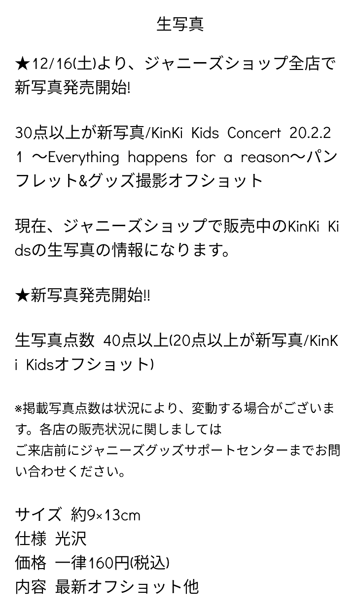 [KinKi Kids] 12/16 쟈니즈샵 오프샷 발매