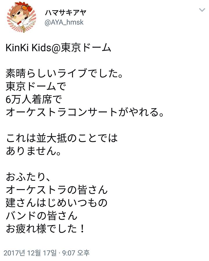 [KinKi Kids] 12/17 하마사키 아야상 트윗