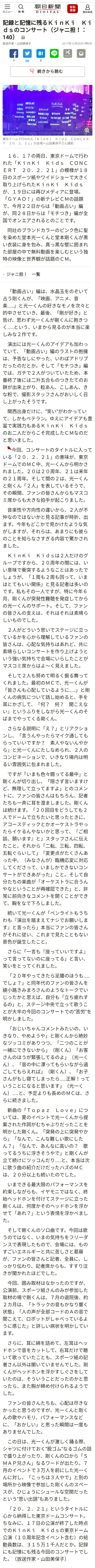 [KinKi Kids] 12/20 아사히 신문: 방송작가 山田美保子(야마다 미호코)상 칼럼 (12/17 도쿄 공연 레포)
