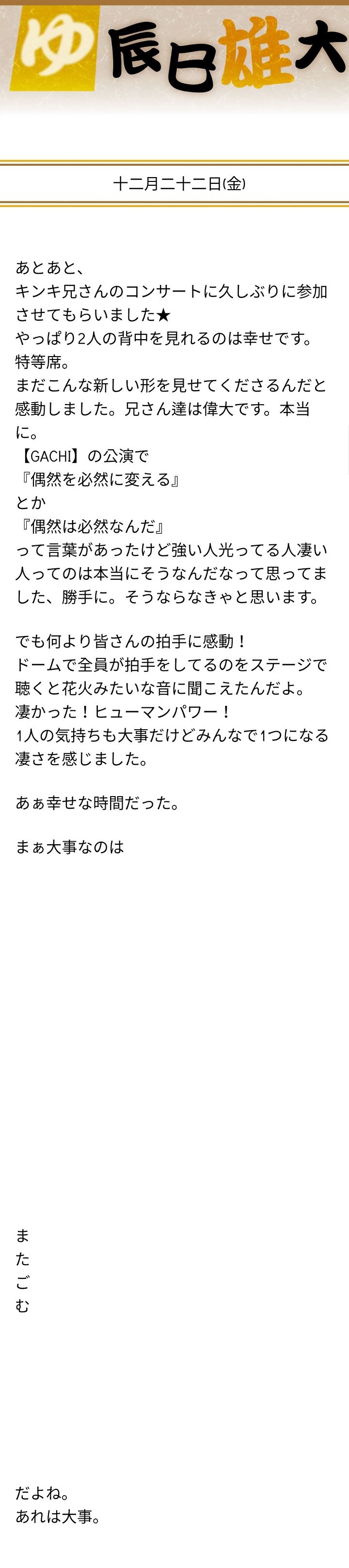 [KinKi Kids] 12/22 포유 타츠미 유다이 웹일기