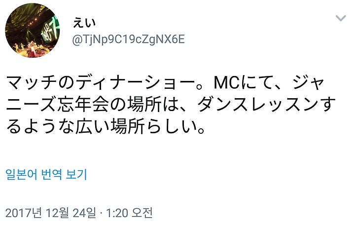 쟈니즈 망년회 장소는 댄스 레슨하는 듯한 넓은 장소라나봐